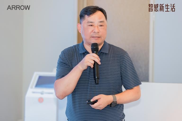 5月27日下午,箭牌卫浴「智感新生活」新品发布会正式启动,中国建筑装饰协会住宅装饰装修和部品产业分会胡亚南,箭牌家居集团董事长、总经理谢岳荣,箭牌家居集团副总经理卢金辉,箭牌卫浴事业部总经理贾冬启,沸腾质量数据执行总裁刘伟斌,浙江福康通康养科技有限公司董事长汪明等相关负责人参与发布会。